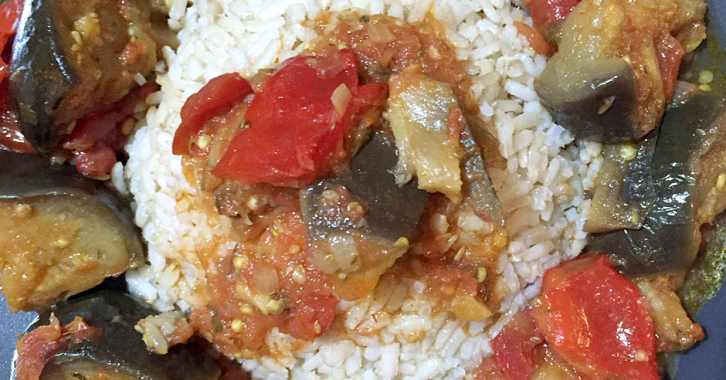 Μελιτζάνες κοκκινιστές με ρύζι