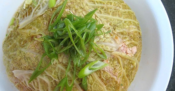 Λαχανοντολμάδες με σταφίδες και κουκουνάρι