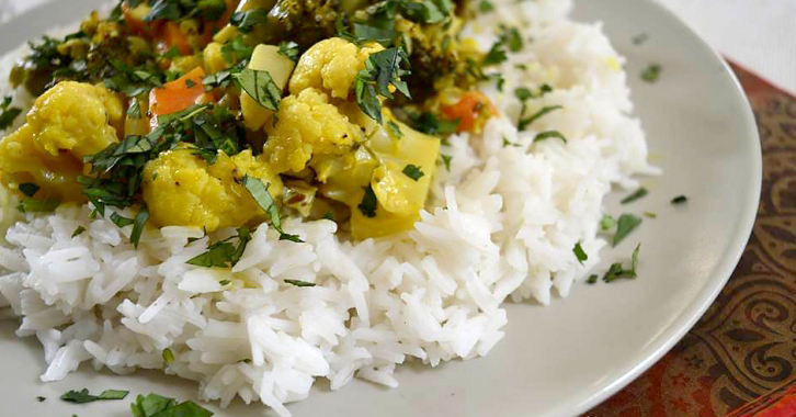 Κάρυ λαχανικών με γάλα καρύδας και ρύζι μπασμάτι
