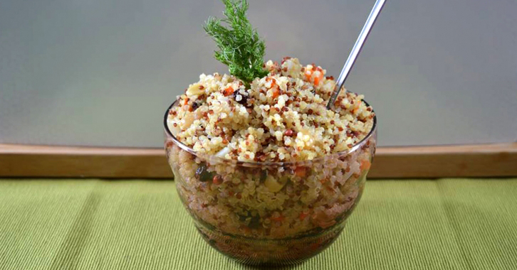 Αντί για ρύζι χρησιμοποιούμε κινόα, τροφή πλούσια σε πρωτεΐνη, αλλά χαμηλή σε λιπαρά.
