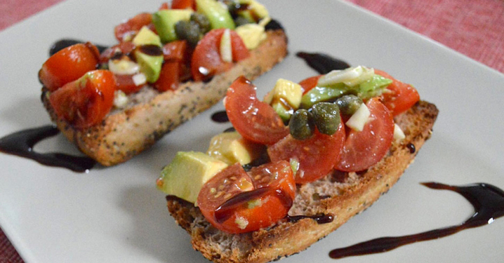 Μπρουσκέτες ντομάτα και αβοκάντο με κρέμα βαλσάμικου
