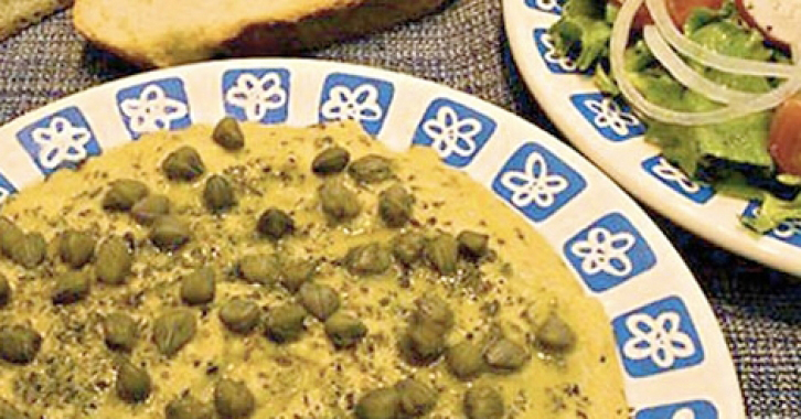 Φάβα Σαντορινιά με σάλτσα κάπαρης