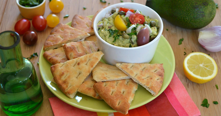 Το γουακαμόλε αποφάσισε να ντυθεί Ελληνικά! Με ελιές, κάπαρη, ρίγανη και τραγανές πίτες, ήρθε να δώσει χρώμα και γεύση στη συλλογή των ορεκτικών μας.