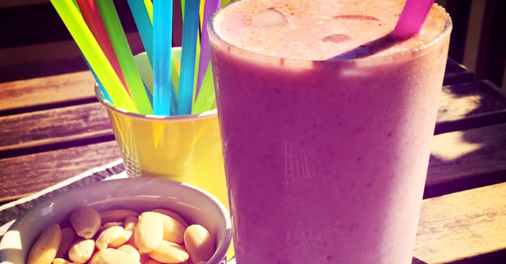 Smoothie φράουλα με γάλα καρύδας και αμύγδαλα