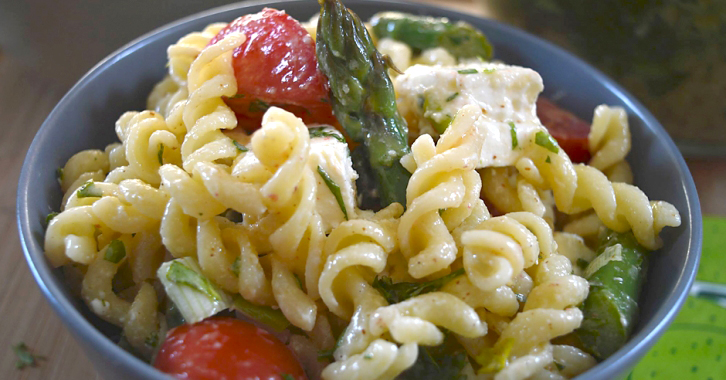 Ανοιξιάτικη σαλάτα ζυμαρικών με σπαράγγια και αρωματικό ντρέσινγκ λεμονιού